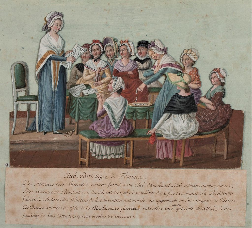 Women’s participation was an important aspect of the revolutionary decade, across the political spectrum. Despite the energetic campaigns of individual feminists in the early years of the Revolution, the intervention of working women in collective action in Paris, and their presence in clubs and societies, almost all male politicians were firmly opposed to women’s political rights. Women were completely excluded from the Constitution of 1791 in which only men were “born free and equal in rights’.