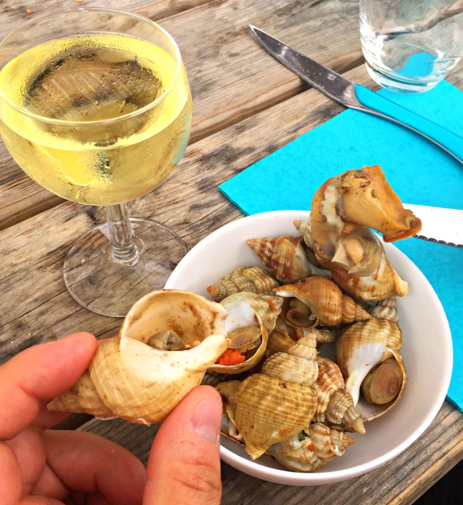 Eat oysters freshly picked from the sea for lunch or dinner at one of the many cabanes along the estuary, at the Avenue des Pécheurs. We enjoyed a sumptuous meal of oysters, bulots (sea snails) and crevettes with fresh bread and wine at La Cabane du Pirelon.