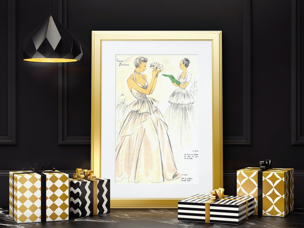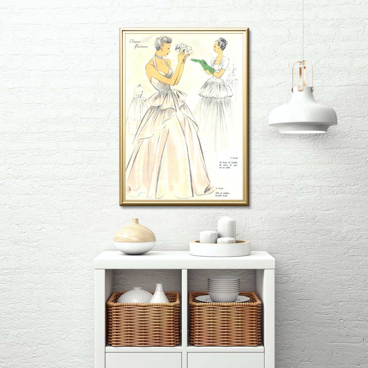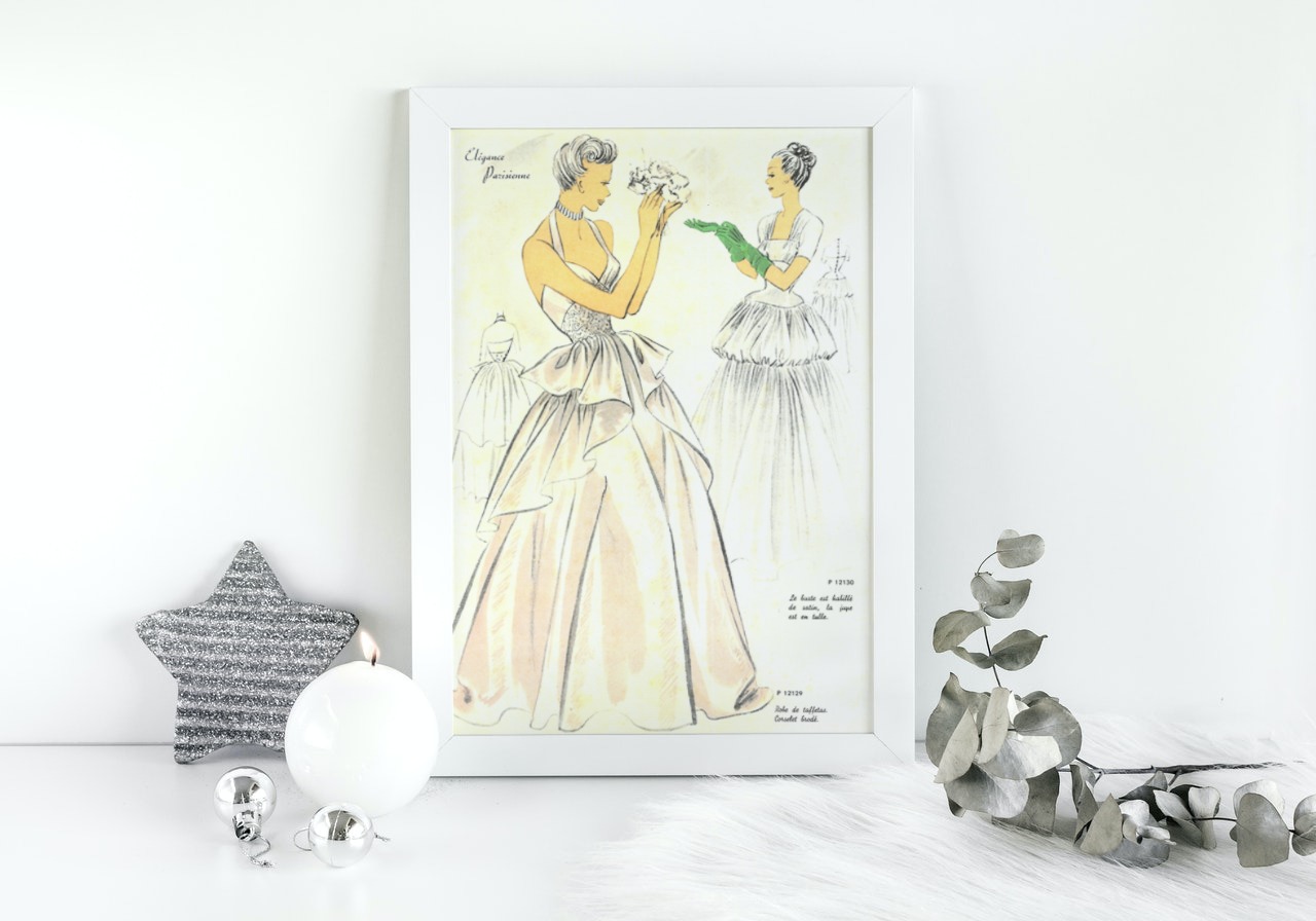 1930s Parisienne Elégance, wedding dress, French fashion, Vintage print