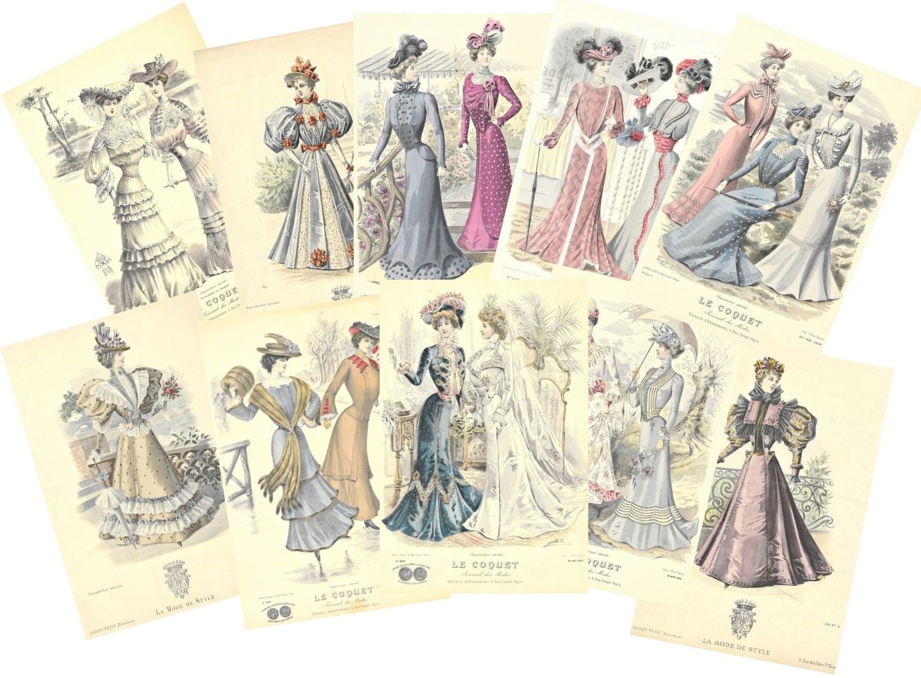 19th century Paris fashion plates, postcard set (10 cards), Le Coquet, La Mode de Style, French vintage