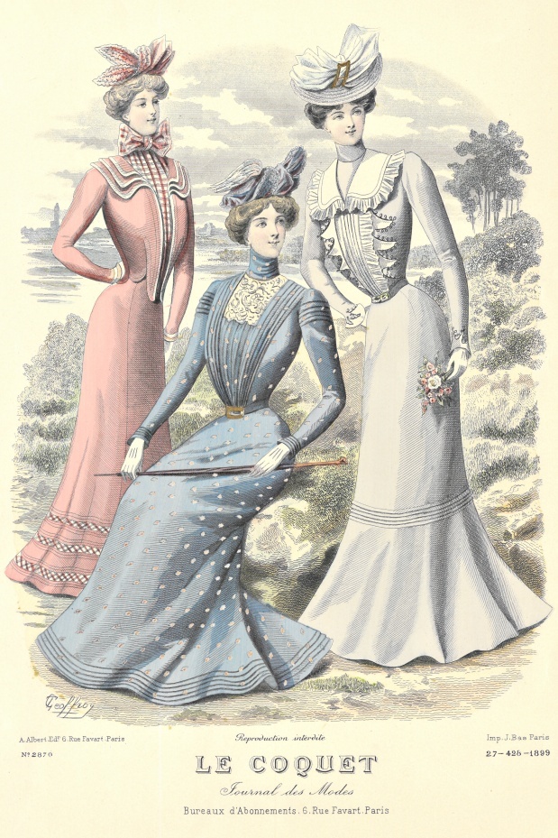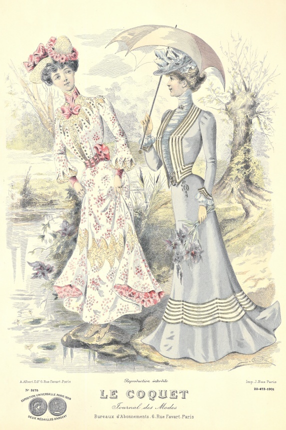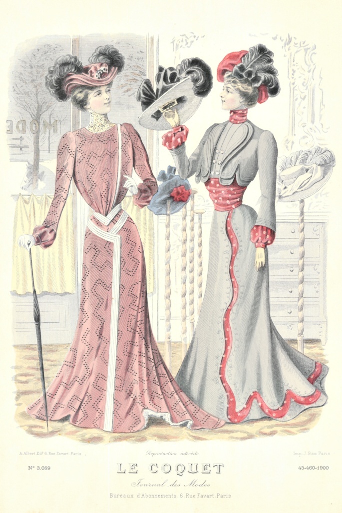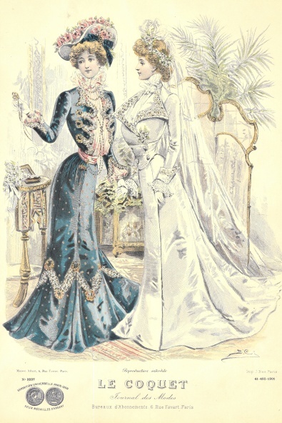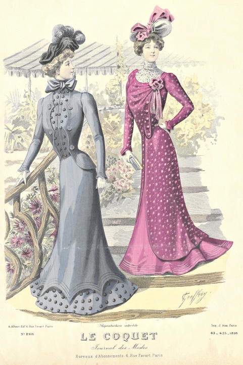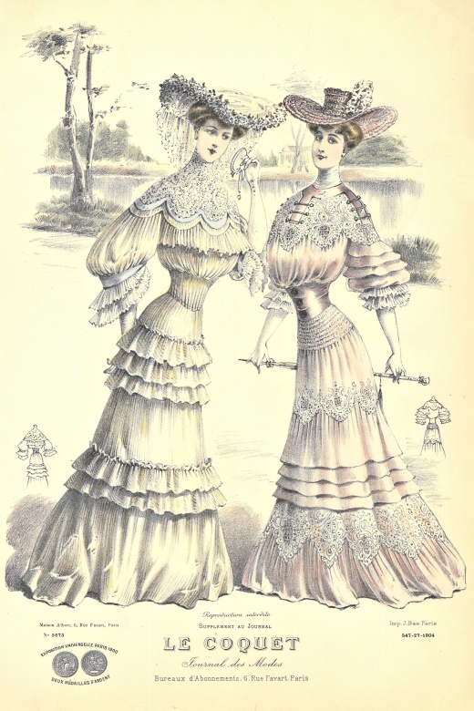A beautiful collection of postcards reprinted from original French fashion plates from the 19th century. These illustrations are from several Paris fashion journals of the time, Le Coquet and La Mode de Style. They are a wonderful display of the gorgeous designs of the past!