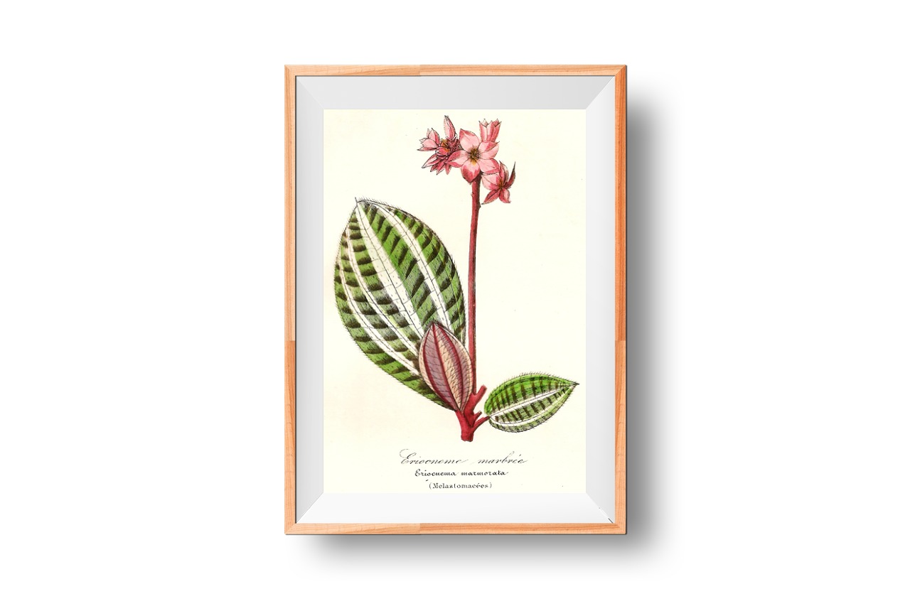 Title – Eriocneme Marbrée, Eriocuema Marmorata, Melastomacées, 1852, French, Le Maout botanical print