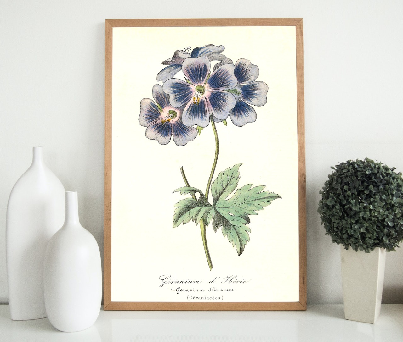 Title -Géranium d’Ibérie, Caucasian crane’s-bill, 1852, French, Le Maout botanical print