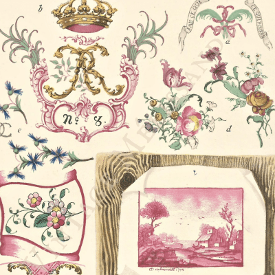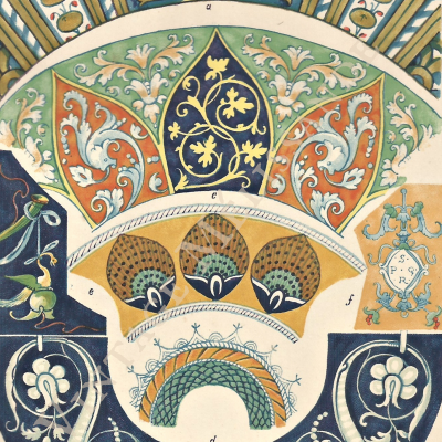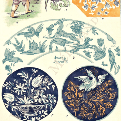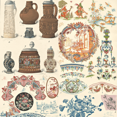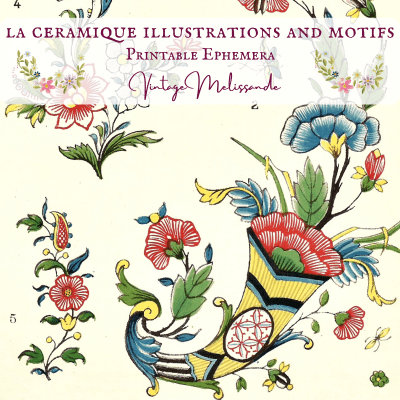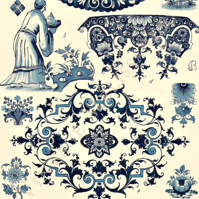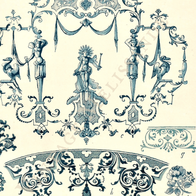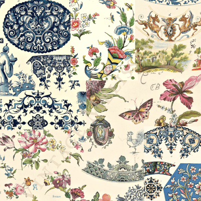 This gorgeous collection of motifs has been taken from an 1893 dictionary of ceramic designs, written by Edouard Garnier, who was a conservator at the Musée et de la Manufacture de Sèvres, where the most beautiful works of pottery and ceramics in the world have been made for 280 years.