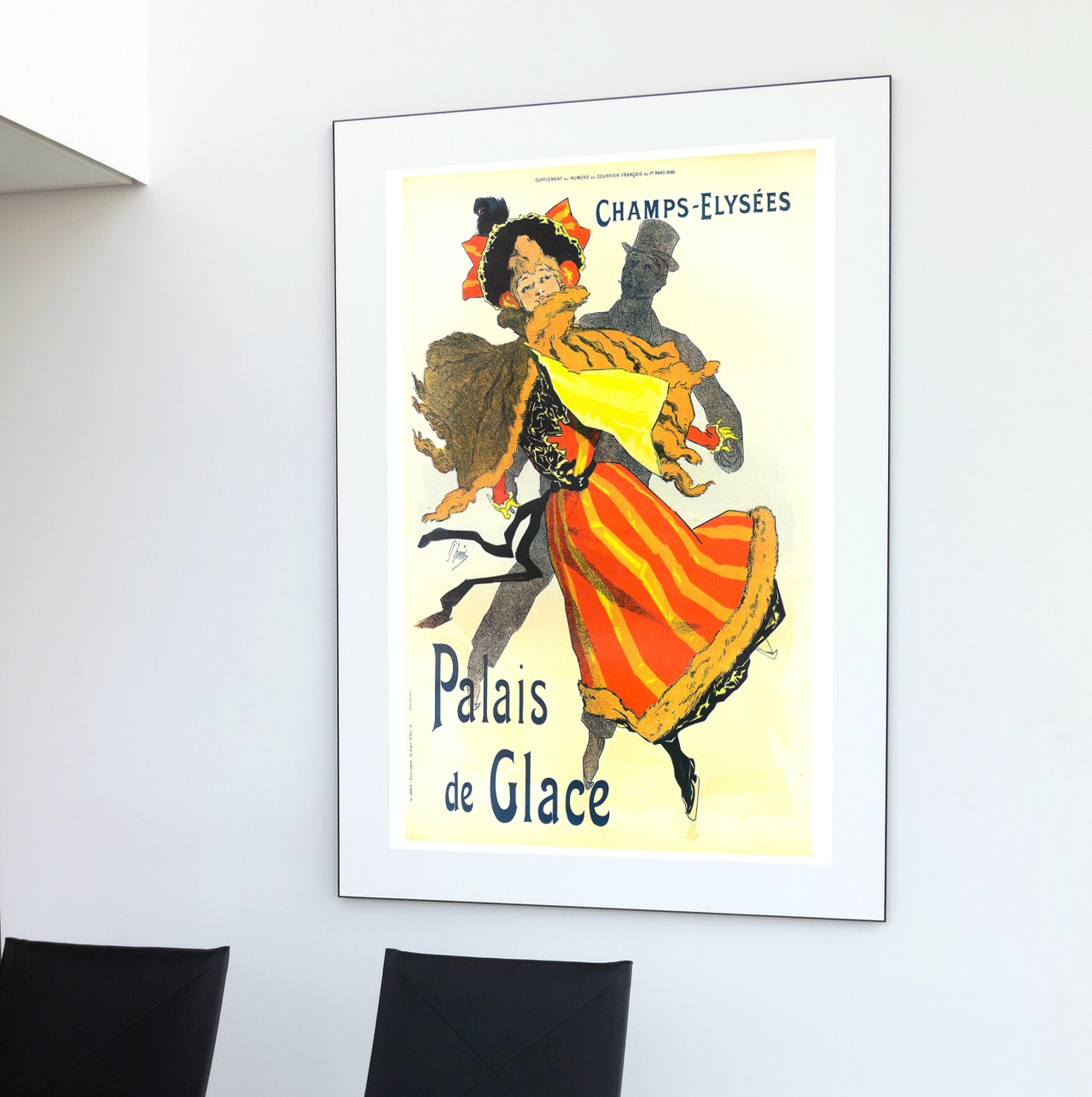 This listing is for an 1896 Art Nouveau print. Les Palais Glaces was an ice rink established at the rond-point of the Champs-Elysées in 1893, also a place of shows and exhibitions. This print is an advertising poster for the famous icy entertainment.