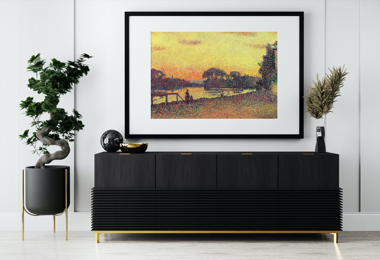 Title – Maximillien Luce print, Coucher de soleil bord de Seine à Herblay, Paris, Pointillist art