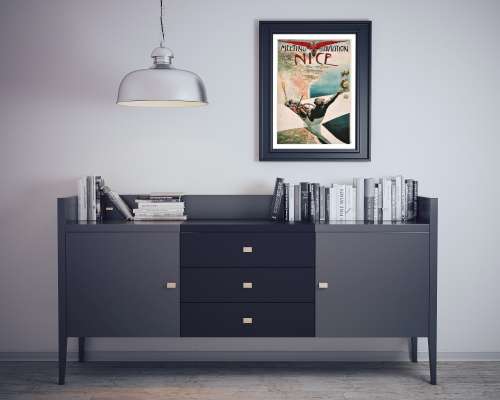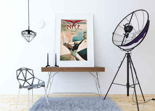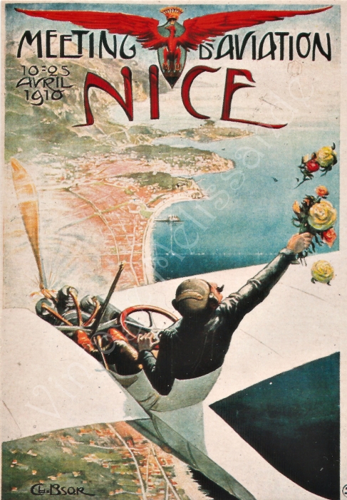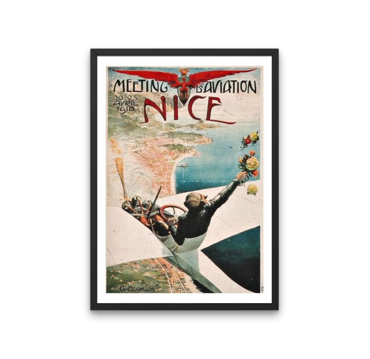 During the month of April, 1910, the city of Nice on the French Riviera saw over one hundred planes come together for an unprecedented display of flying prowess. This beautiful print was an advertising poster for the event.