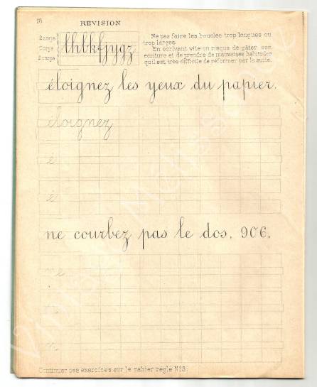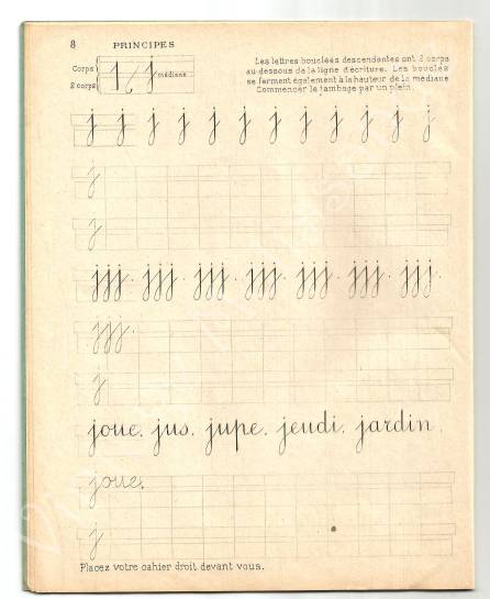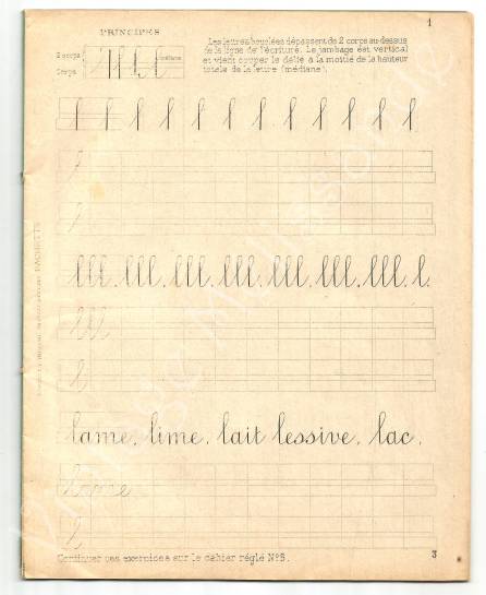 This listing is for a French cursive writing practice book, called ‘Methode d’Ecriture Droite’, for students in the early 1900s.