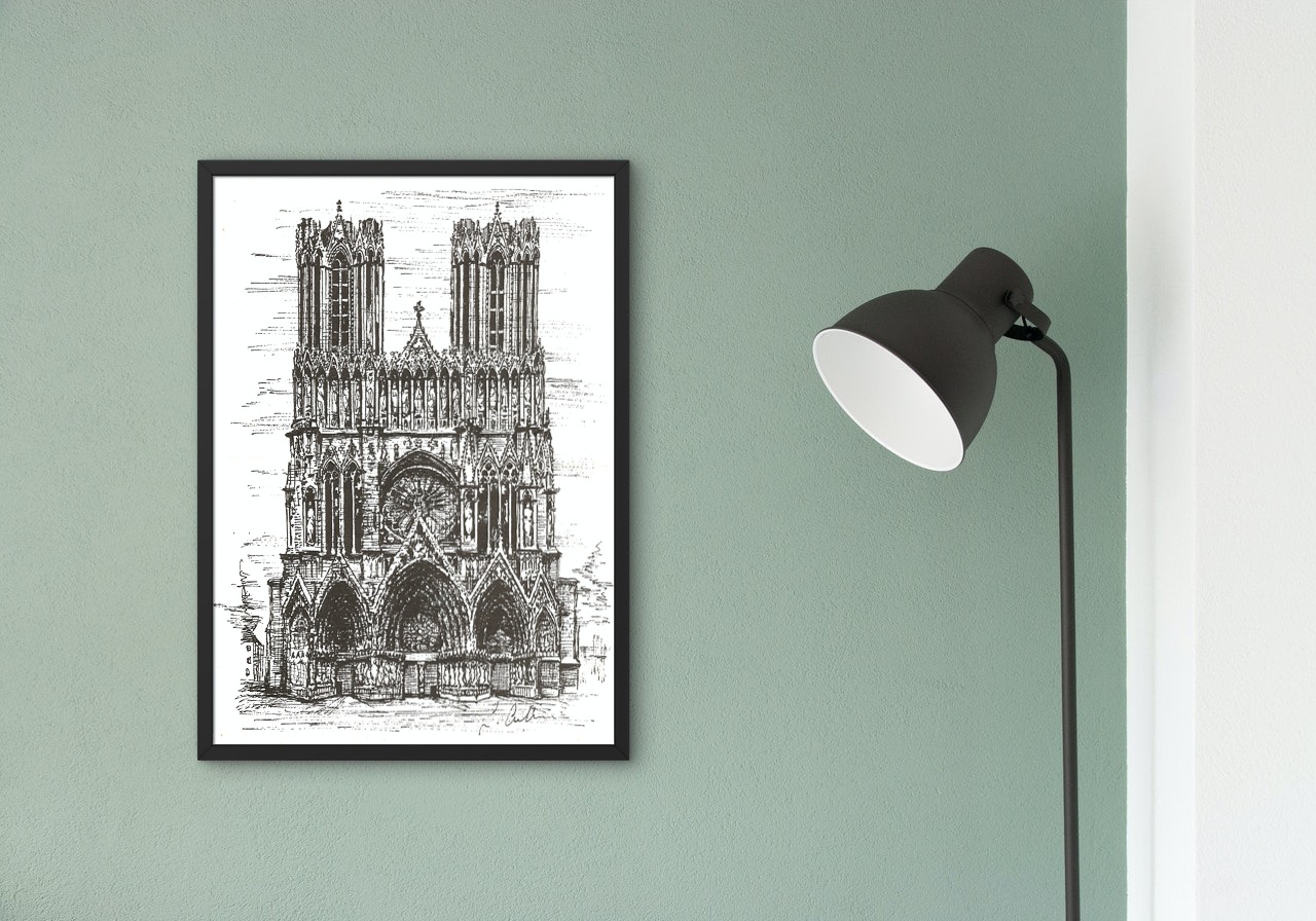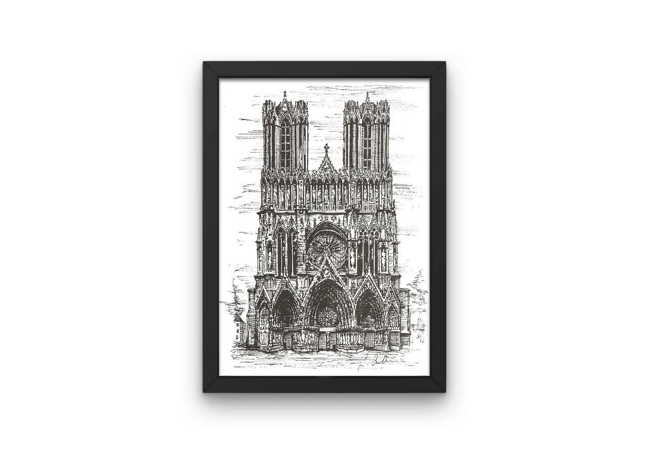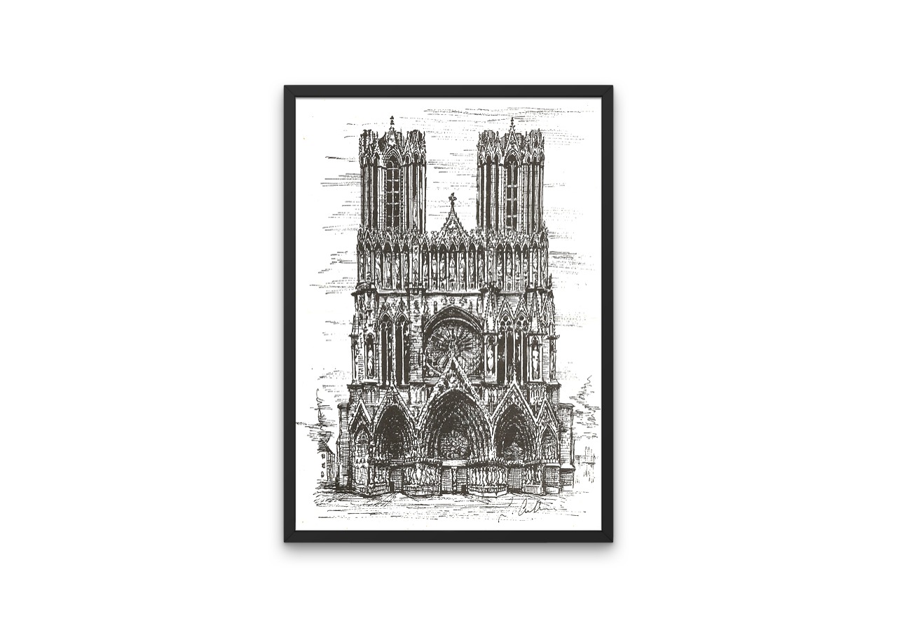 This listing is for one print, of the Reims Cathedral, in the north east of France, in the midst of the vines where the world’s best champagne is made! It is one of the most beautiful cathedrals in France.