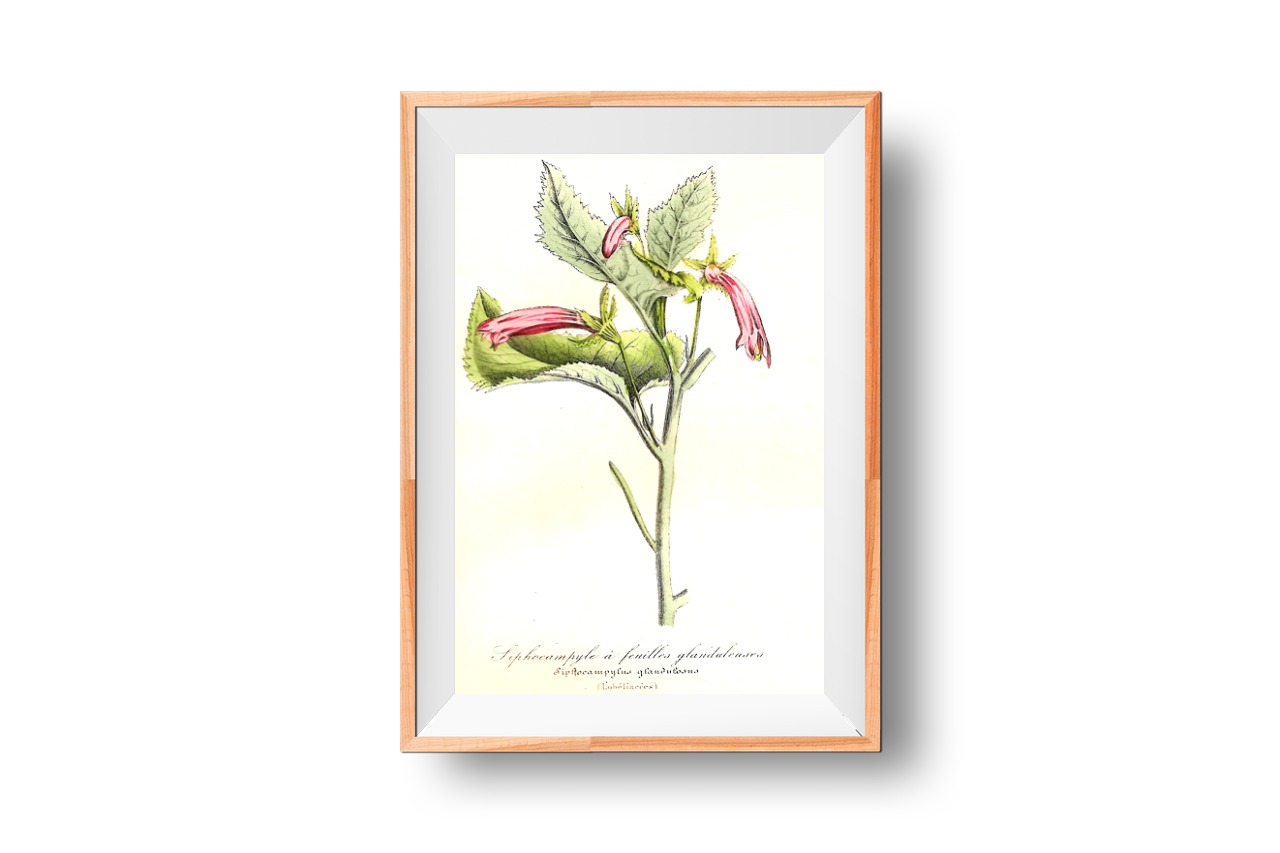 Title – Siphocampyle a feuilles glanduleuses, bellflower, French, Le Maout botanical print