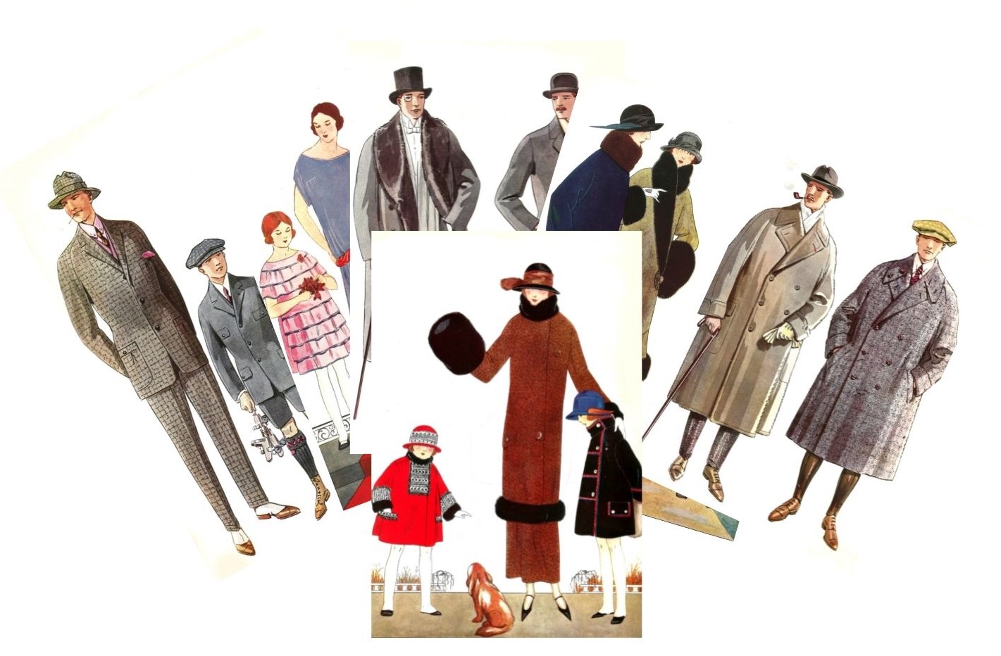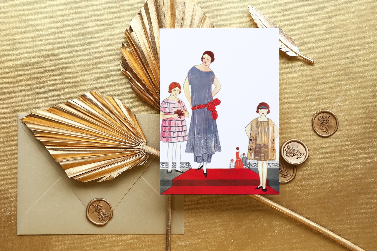 There are six cards in the set, of the latest 1920s Paris style for women, men and children.