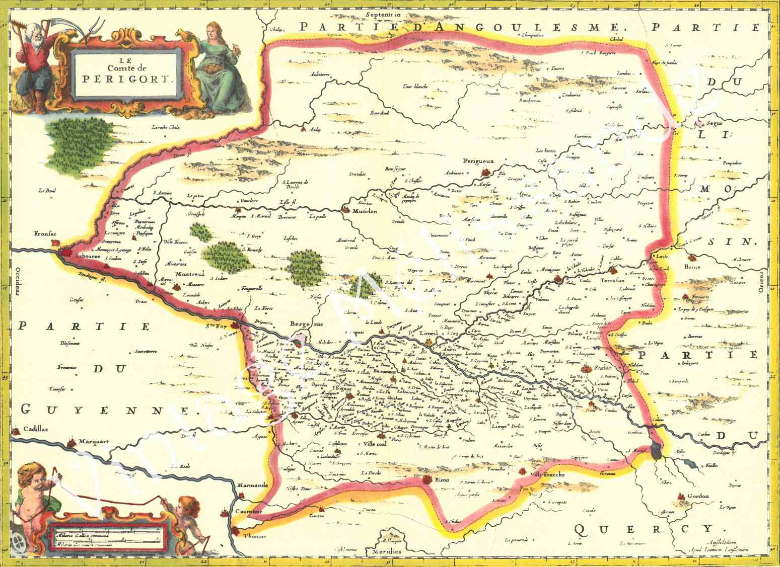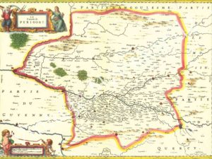 This is a map of the Périgord region of France, the historic seat of the Counts of Périgord, or Le Comte de Perigort as is recorded on the map.