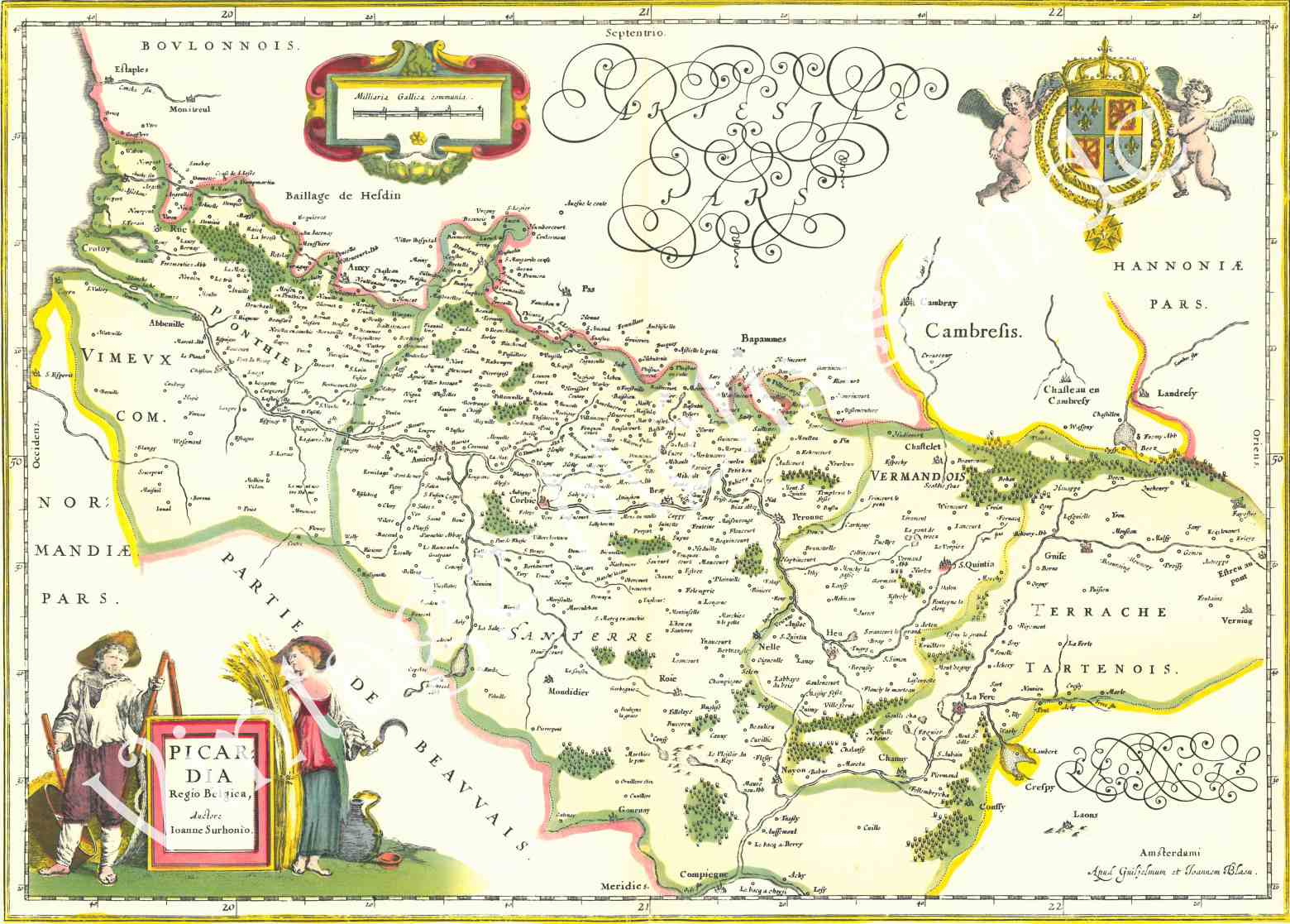 This is an antique map of the Picardie or Picardy region in the north east of France.
