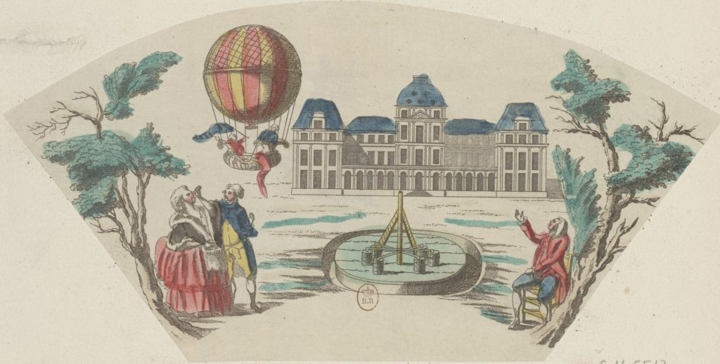 Gorgeously decorated balloons sparked new fashion trends all over Europe and inspired new fads and products. Hair and clothing styles, jewelry, snuffboxes, wallpaper, chandeliers, bird cages, fans, clocks, chairs, armoires, hats, and other items, were designed with balloon motifs.